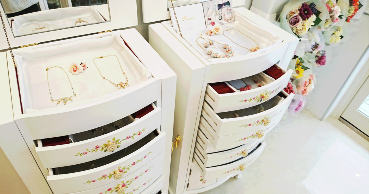 また、ティアラ、アクセサリー、ベール、ブーケなどのウェディング小物の販売や、高品質な造花の販売、ハーバリウムのレッスン、ワークショップも実施しています。
